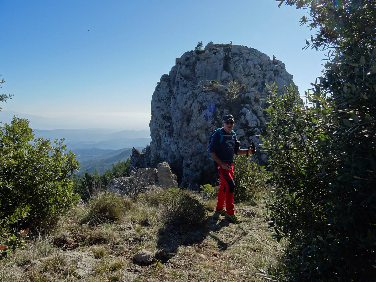 Seguint la carena ens acostarem al Castell de Bac de Grillera (1017 m), segon cim del dia i al que accedirem amb una curta grimpada i un tram equipat amb cadenes , es un punt un tan complicat .Dalt el cim es el punt d´esmorzar , a l'estar un pas difícil la majoria donen la volta per darrere abon el camí fins al cim es faci'l els altres pugem aquest tram patint una miqueta